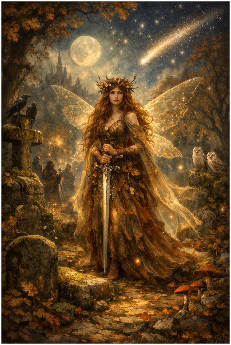 erzählst Legenden-Mythen, dem Jenseits nah, das Schwert tragend.