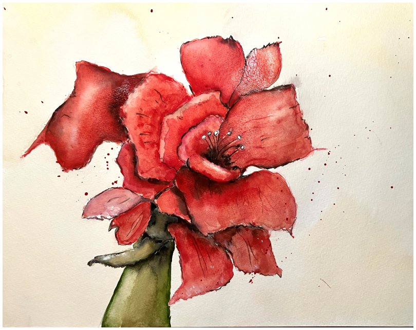 die rote Amaryllis-Blüte aus.