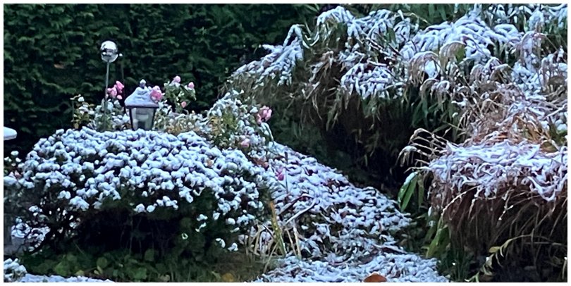 die letzten Rosen sind verschneit.