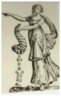 In der Hand hielt er ein Korb mit Lebensmittel und Leckereien.